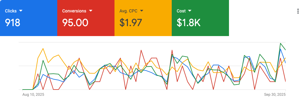 A new Google Ads account with strict medical keyword restrictions, low search volume, and a limited budget. Yet we achieved 95 conversions in only 45 days.